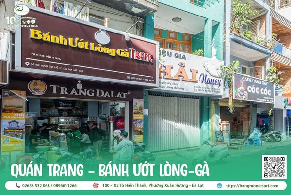 Quán Trang là một trong những quán bánh ướt lòng gà lâu đời và nổi tiếng nhất ở Đà Lạt.