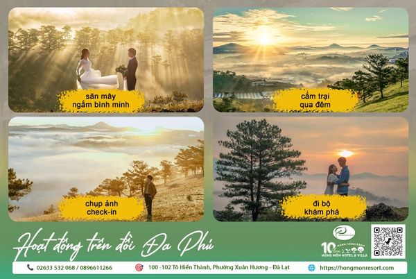 - Chụp ảnh check-in: Với khung cảnh thiên nhiên hùng vĩ, đồi Đa Phú là địa điểm lý tưởng để bạn thỏa sức sáng tạo những bức ảnh tuyệt đẹp. Từ những rặng thông xanh mướt đến biển mây bồng bềnh, mọi góc đều có thể trở thành phông nền hoàn hảo.
